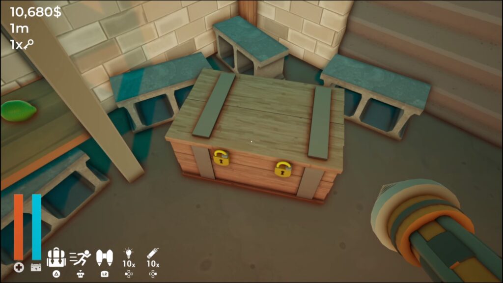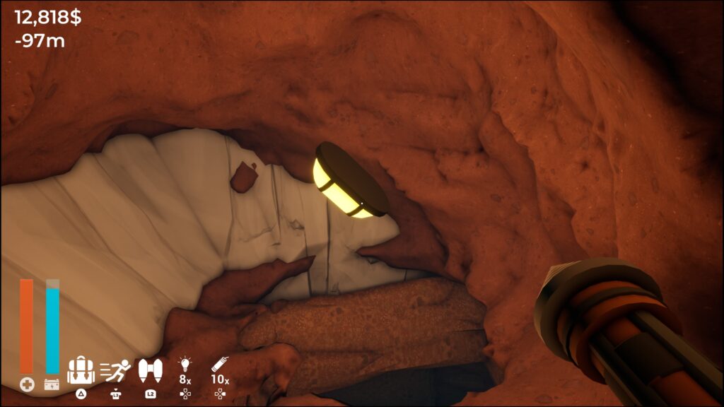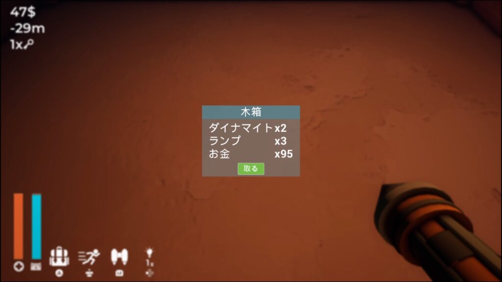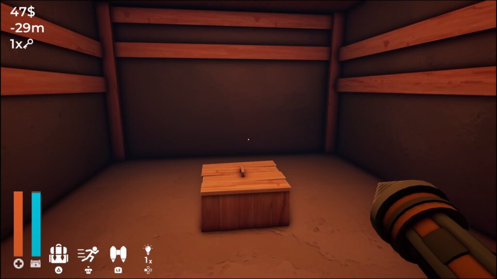 - 入口を採掘し、奥にある木箱を開けるとアイテムと$を入手