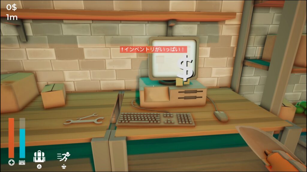 ガレージにある作業台で装備のアップグレード、アイテム購入、回復が行えます