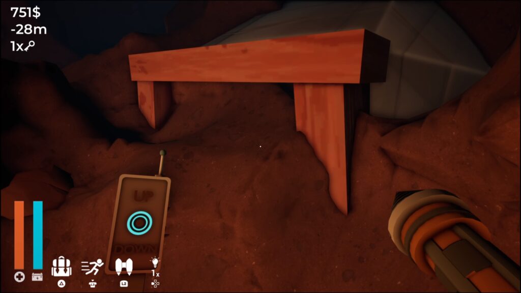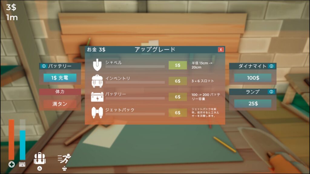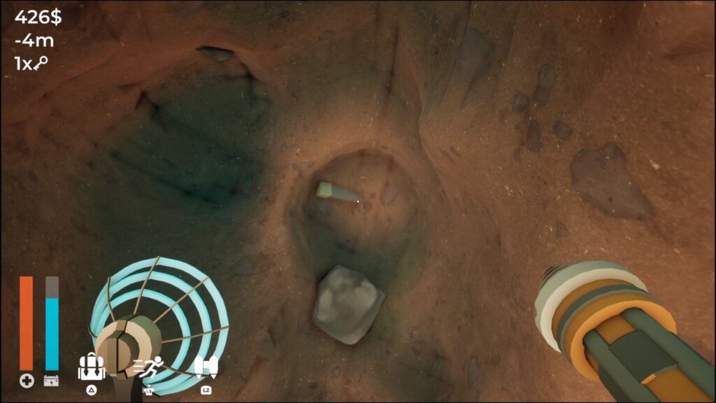 大まかな流れとしては、装備をアップグレードしながら庭を掘り進め、ー100m地点を目指します