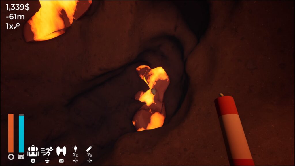 ダイナマイトは、採掘できない岩(茶色)と溶岩(少し光っている)の破壊に使用します