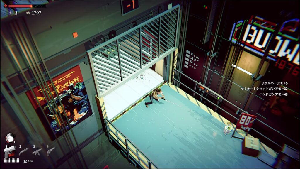 エリア移動後、近くの弾薬箱から弾を入手して昇降機に乗る。