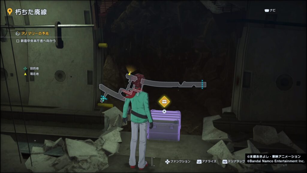 • ガイドマーカーが出ている壁をアナライズし、デジアタックで破壊する