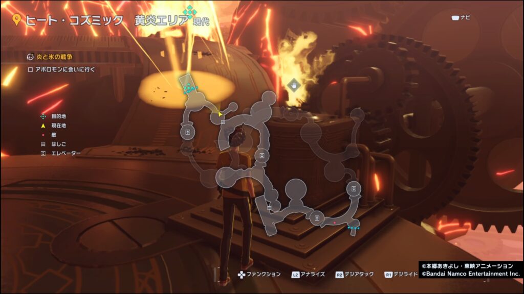 - 中央のエレベーターで移動し、ガイドマーカーの場所へ行くと目標更新