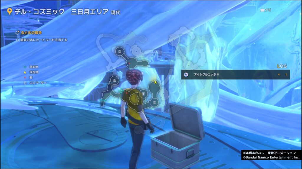 - 三日月エリアの入って東側のエレベーターで移動するとトレジャーボックス(アイシクルエッジⅢ×1)
