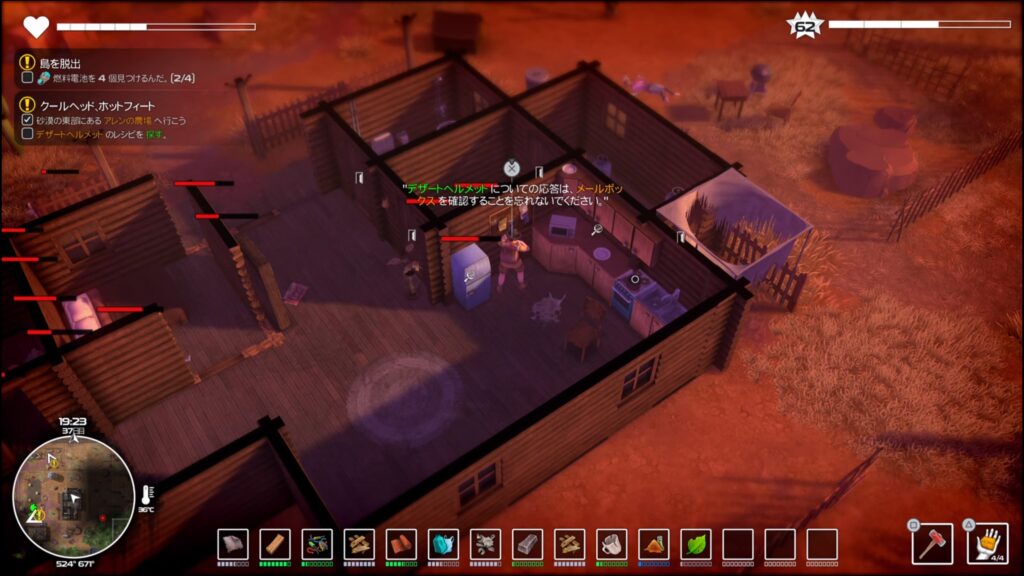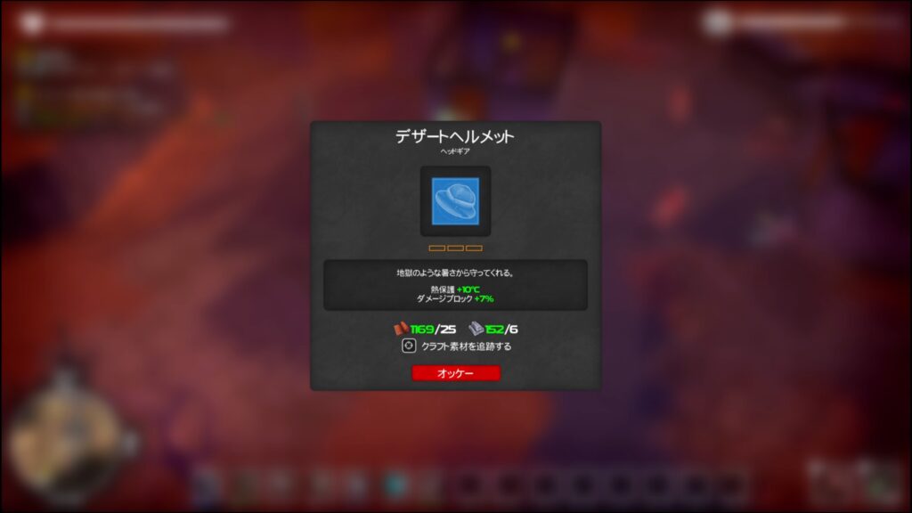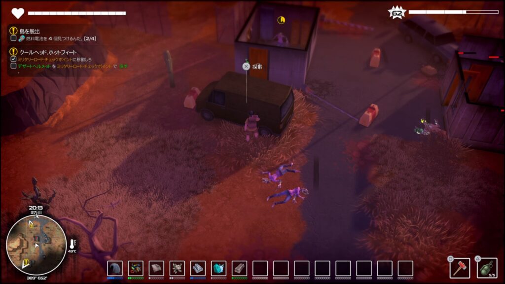 西側にある車両を調べるとデザートヘルメットのレシピを入手してクエスト完了