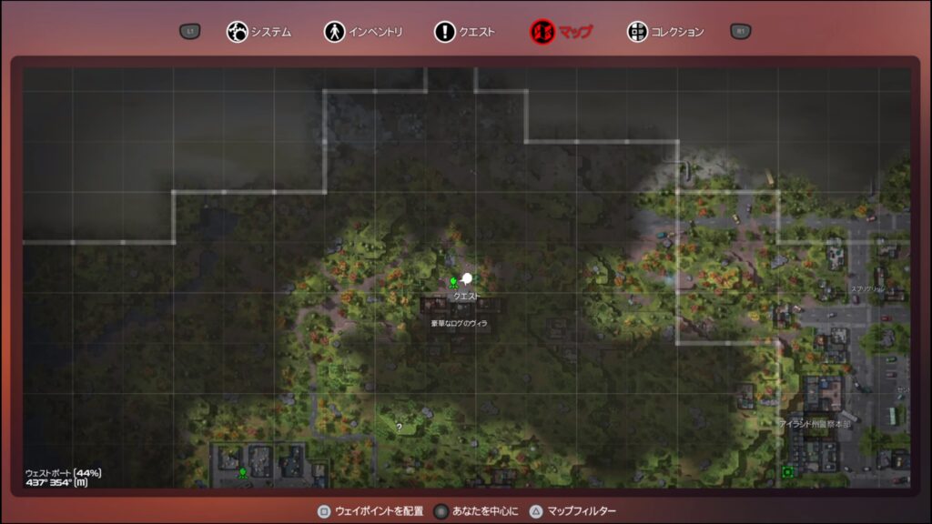 ヴィラの南西にある建物の扉を開けるとクエスト完了