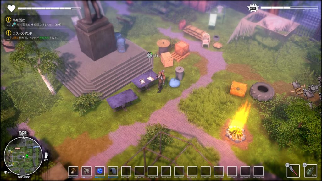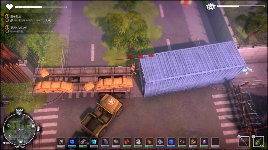 バイオニアパーク東南にある青いコンテナと車両の間の柵を破壊すると安全に入れる