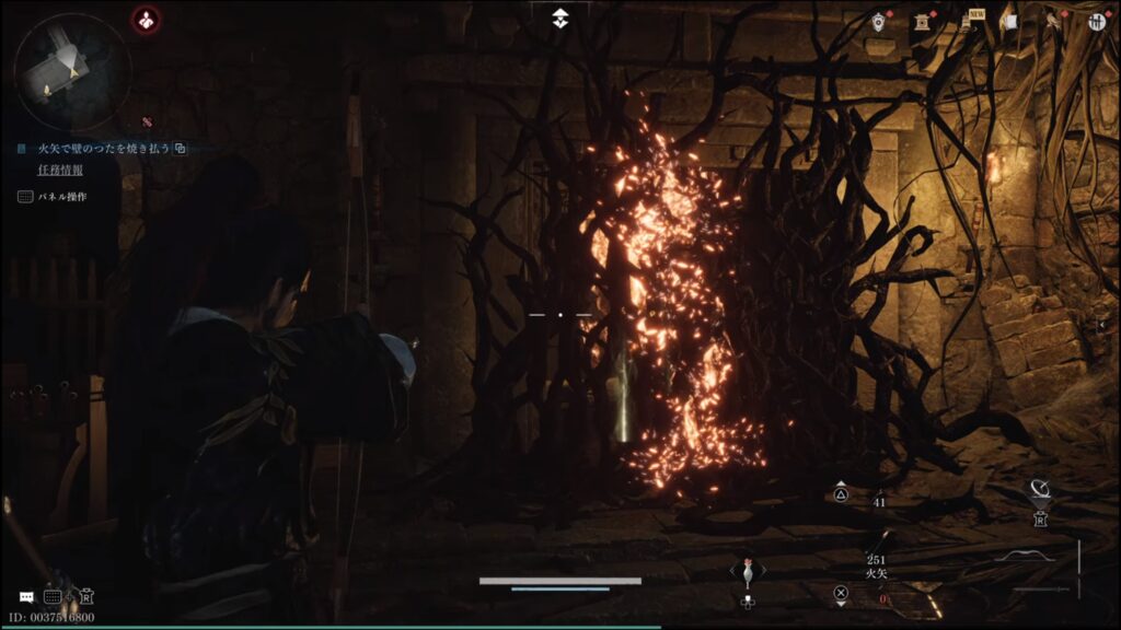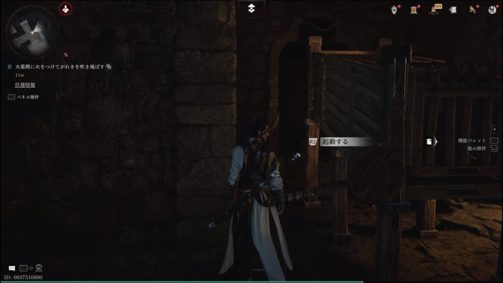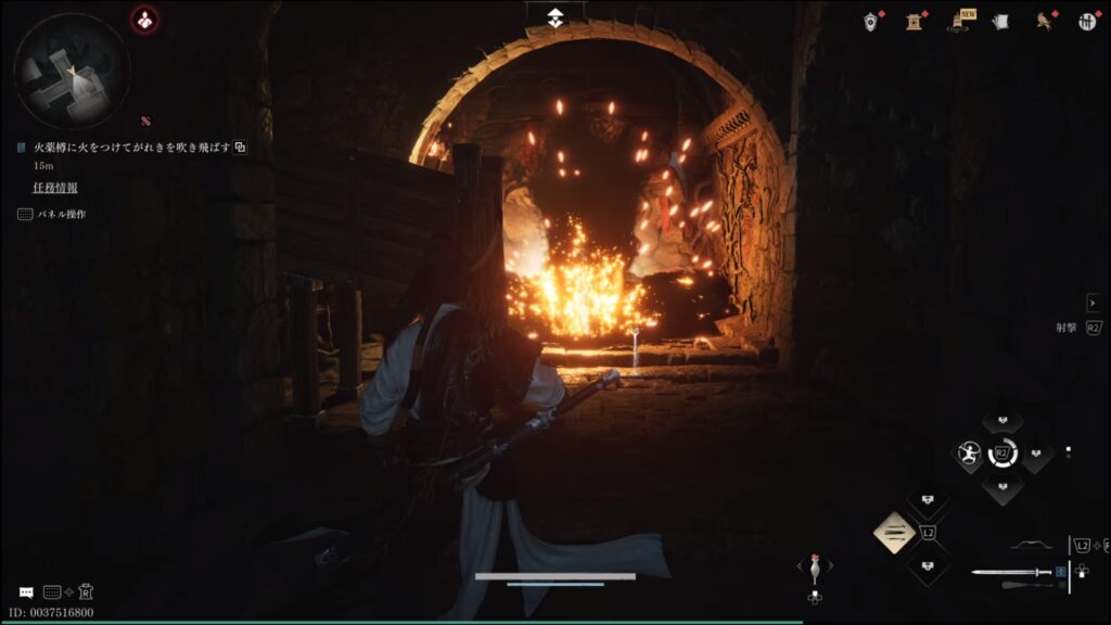 - 火薬樽を瓦礫の前に置き、火矢で爆発させる