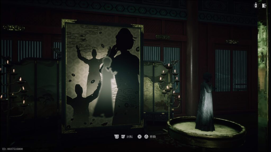 - 石俑を回転させ、影が絵の人物と向き合うようにする