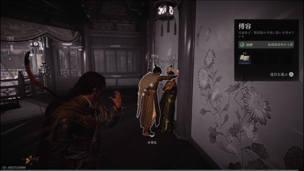 • 2階の北東にいる傳容の持ち物を摂星摘月で奪う
