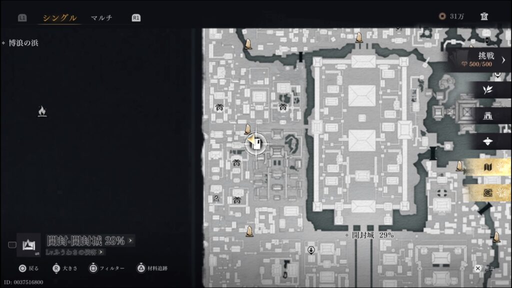- エリア中央の塔にある仕掛け3箇所にかんざしを填める