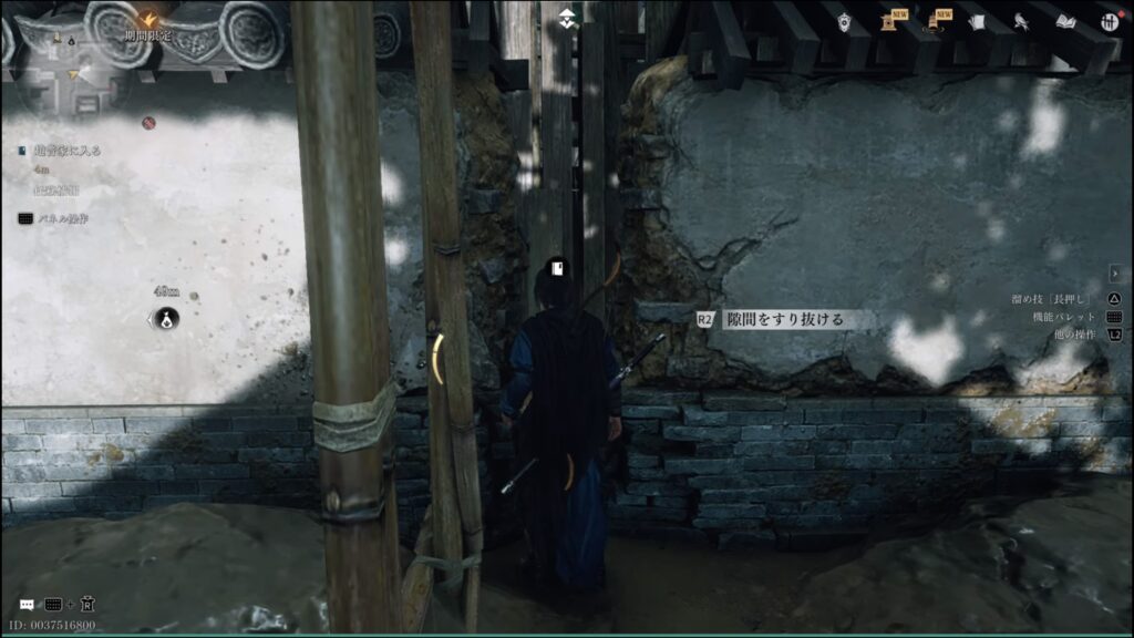 - しゃがみ移動で奥へ進み、突き当たりの隙間を通る