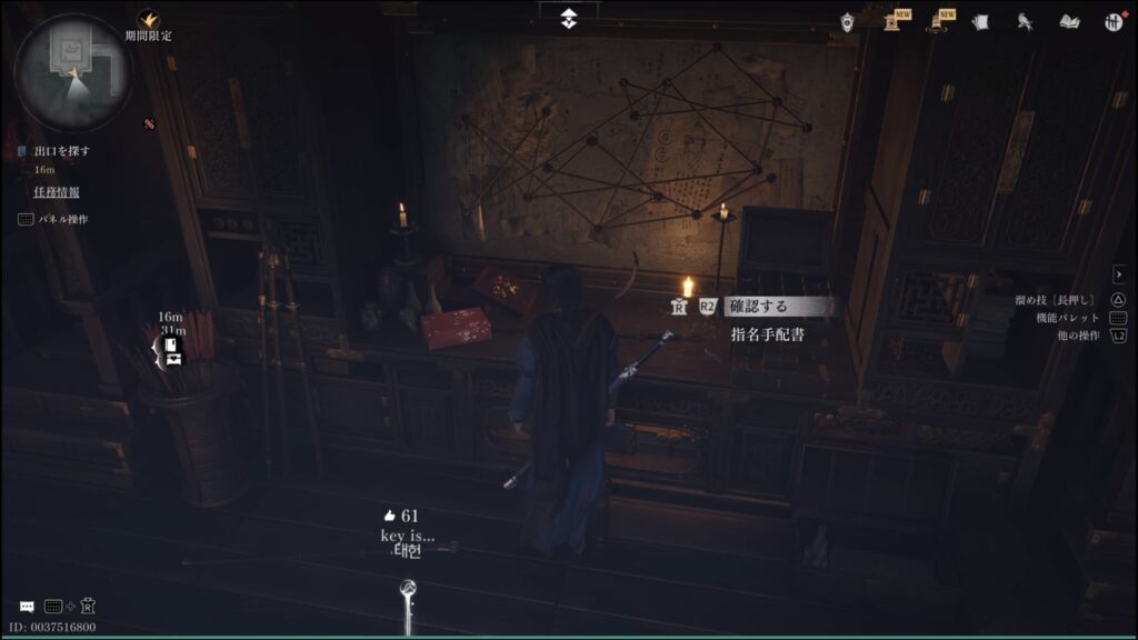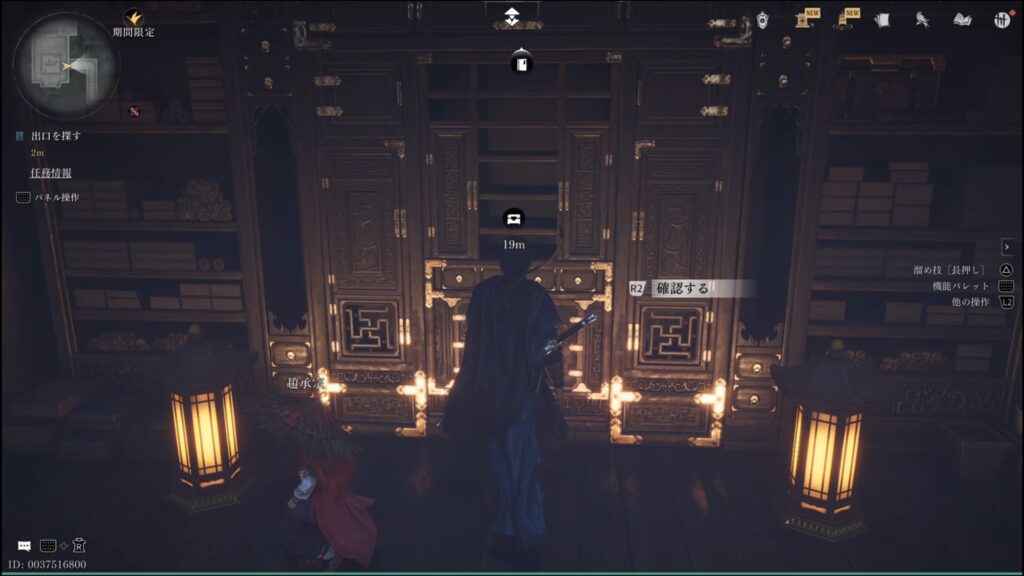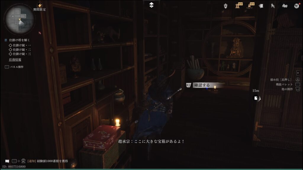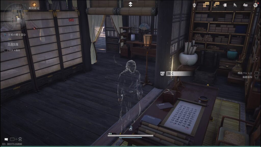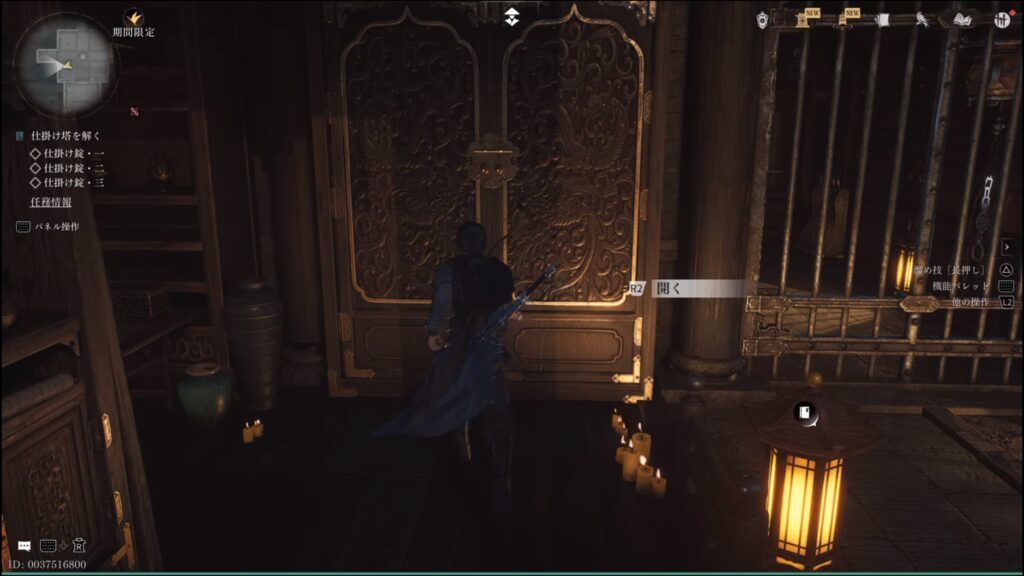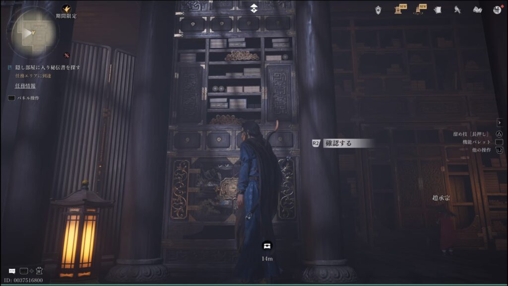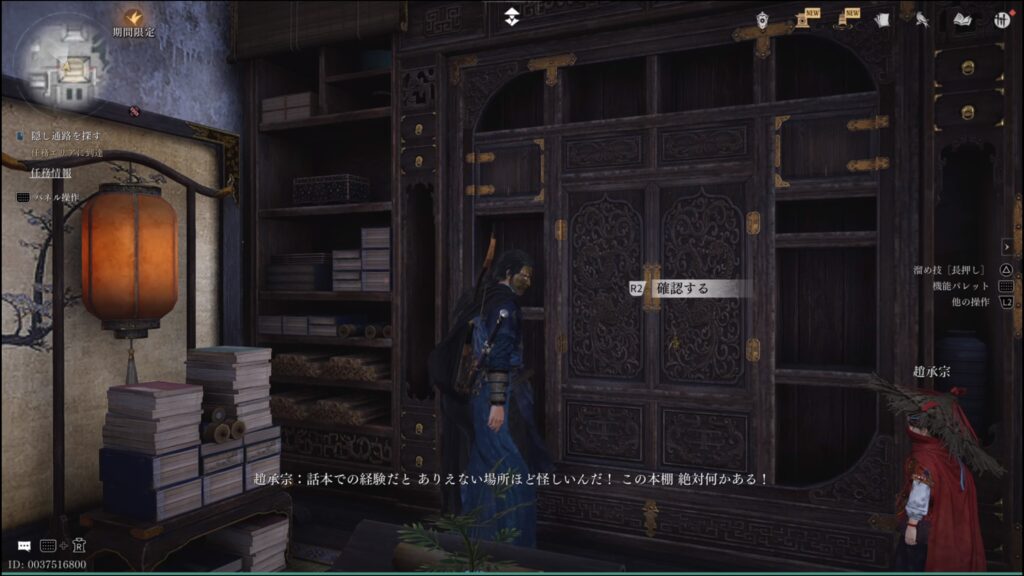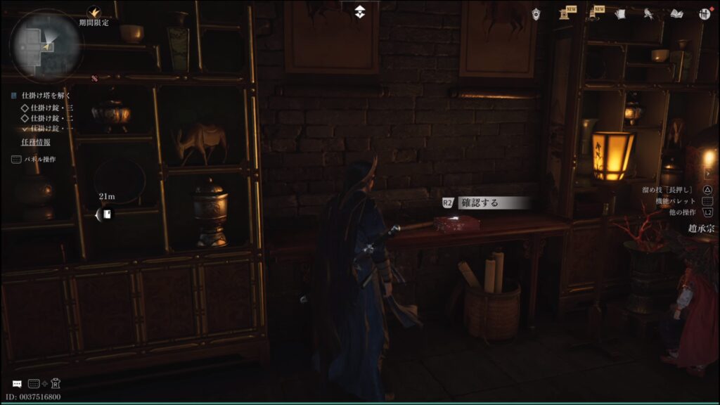 - 1階の西側にある棚を調べ、穴に暗器を填める
