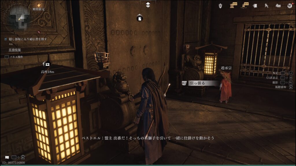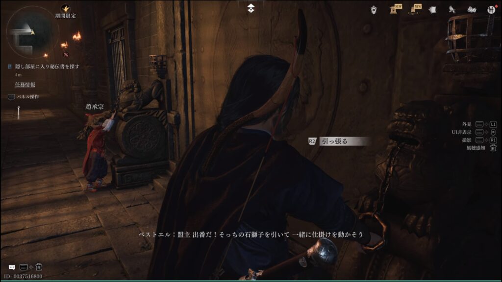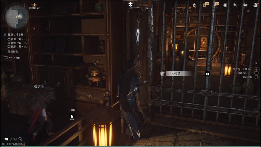 - 壁の開閉を確認後、趙承宗に話しかけて仕掛けを引っ張ってもらう