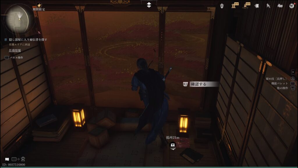 - 2階の寝床を調べ暗器(投剣)を入手する
