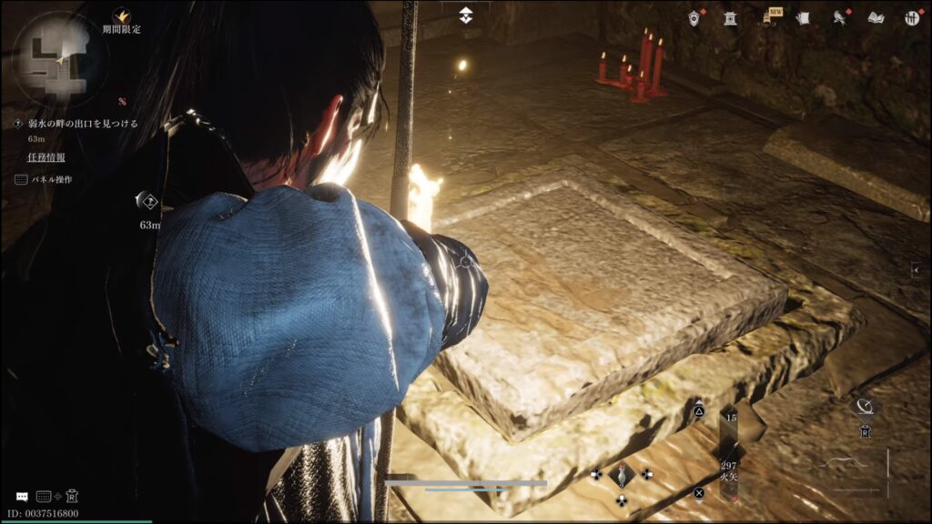 - 蝋燭がある場所の岩の間を通り抜ける