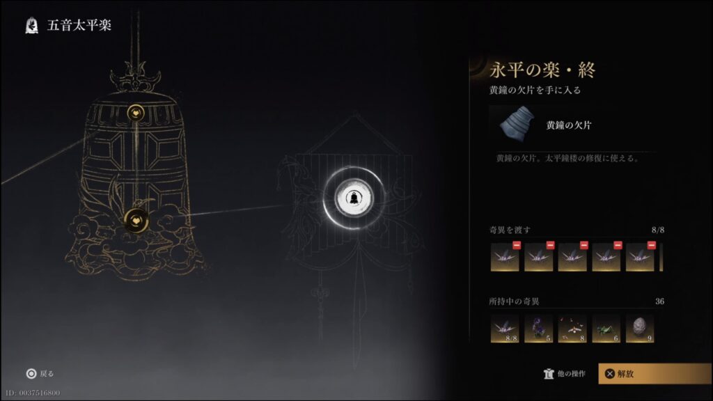 斉生に奇異を渡し、右端の永平の楽・終を解放する