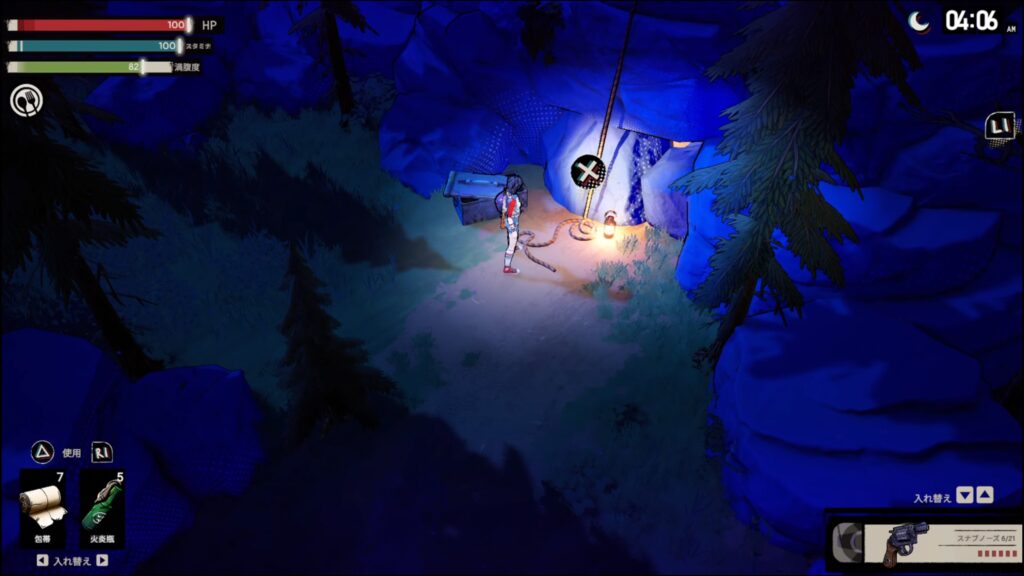 扉の場所から西へ進むと街灯が出現する。街灯を辿ると餌箱に手がかり。