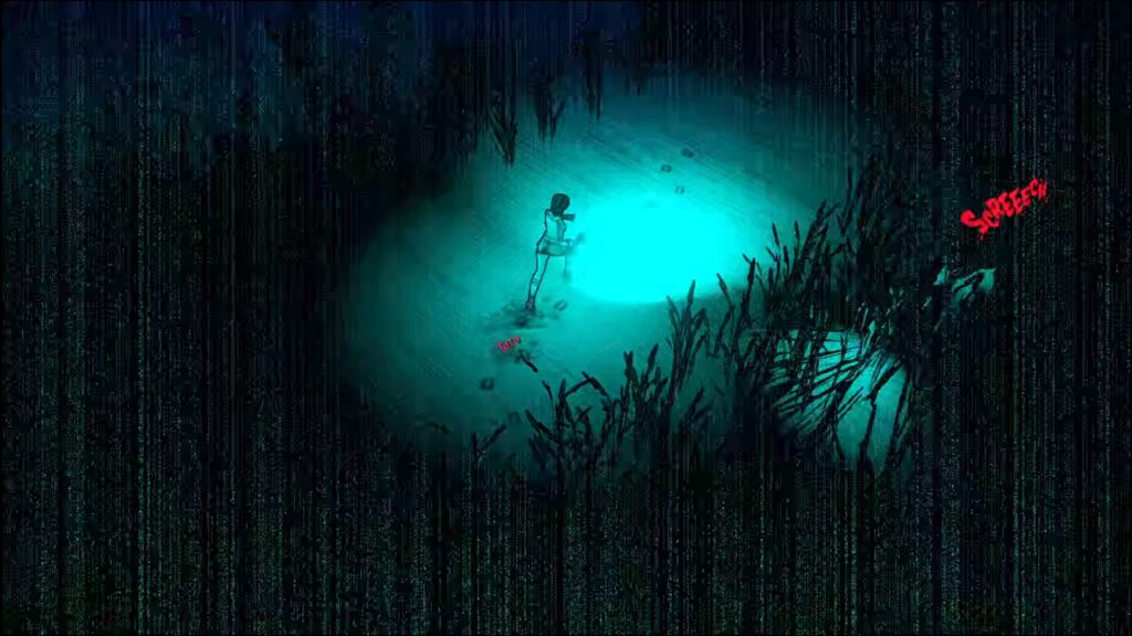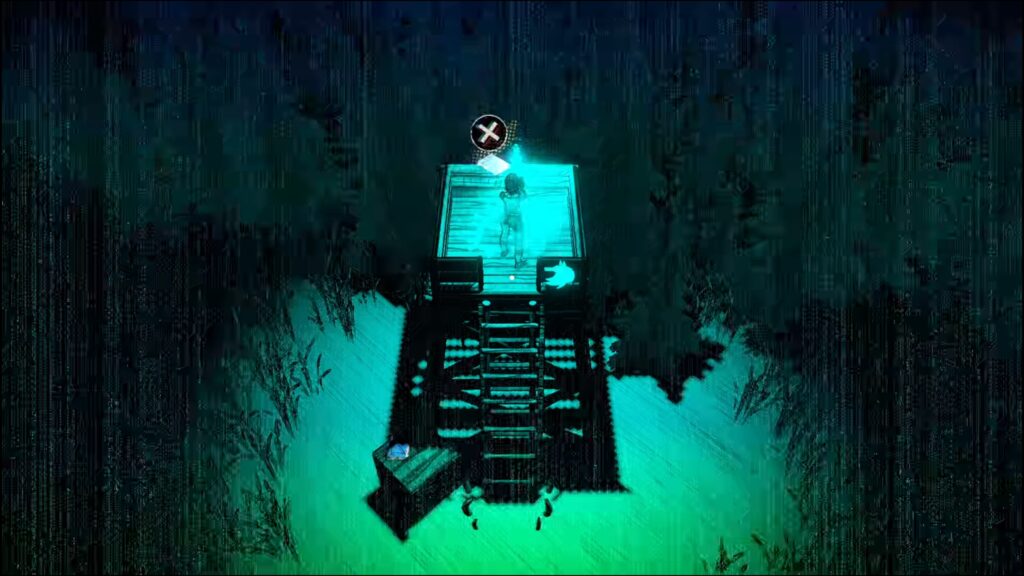 少し進むと光る扉がある。手がかりを集めた後、この扉にインタラクトして元の世界に戻る。
