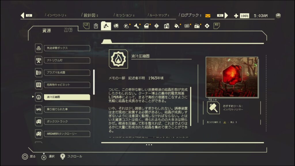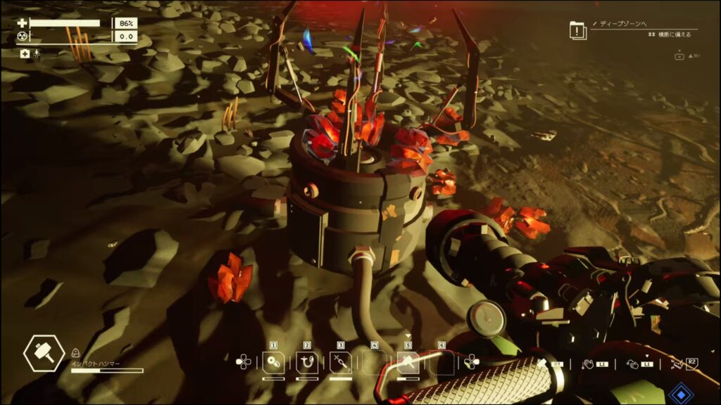 - 素材の熱液汁結晶は、焦土にある液汁圧縮器をインパクトハンマーで破壊すると大量に手に入る