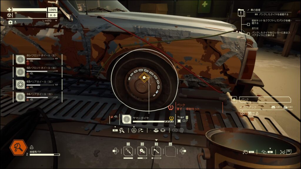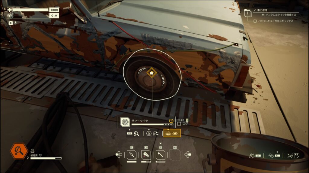 整備キットで修理するか、スペアタイヤと交換するとミッション『ゾーンへの備え』が発生