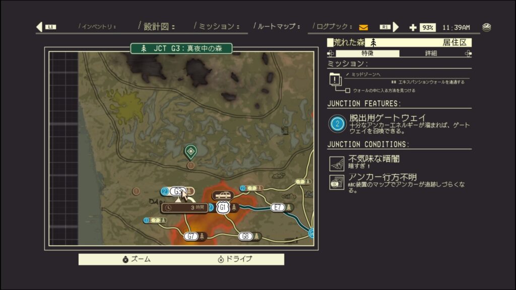 • エキスパンションウォールの前のジャンクションG3まで行き、ゲートウェイでオートショップへ帰る