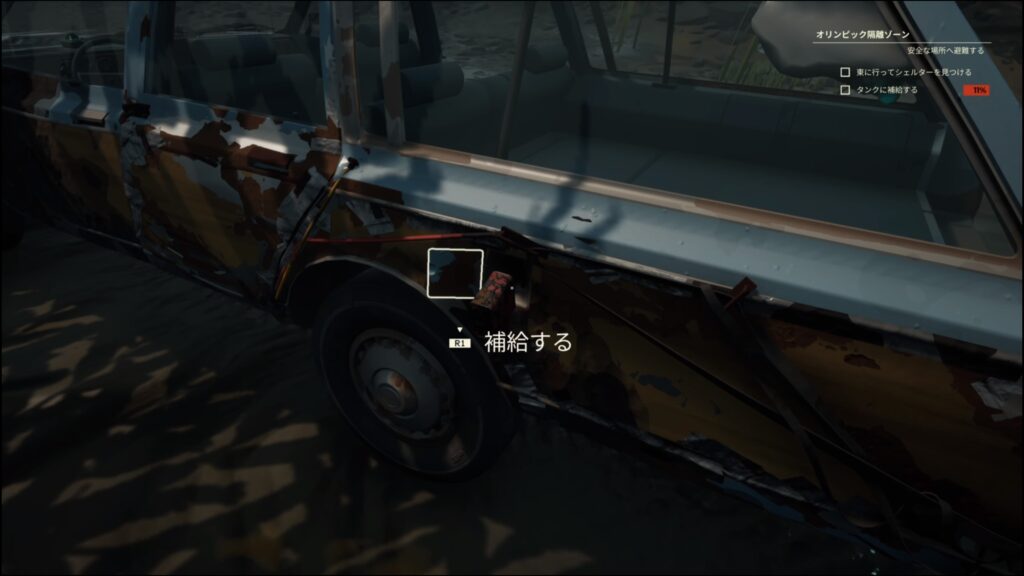 - 道なりに進み、シェルターに入るとミッション『オピーのオートショップ』が発生