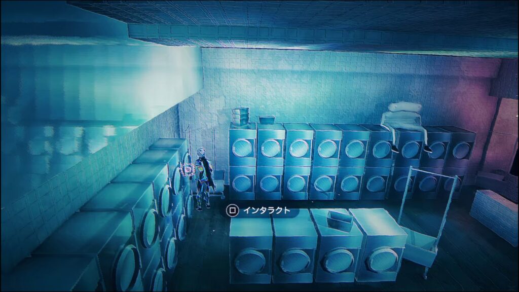 ポータルを通り、コインランドリーに入る
