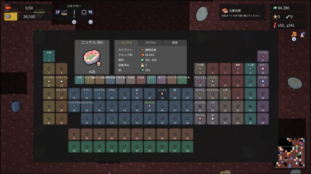 - ニッケル80個、銅100個、亜鉛60個、マグネシウム20個を納品