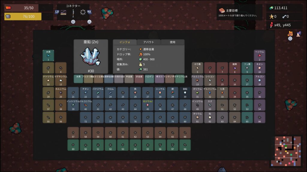 - クロム50個、チタン20個、ニッケル30個を納品