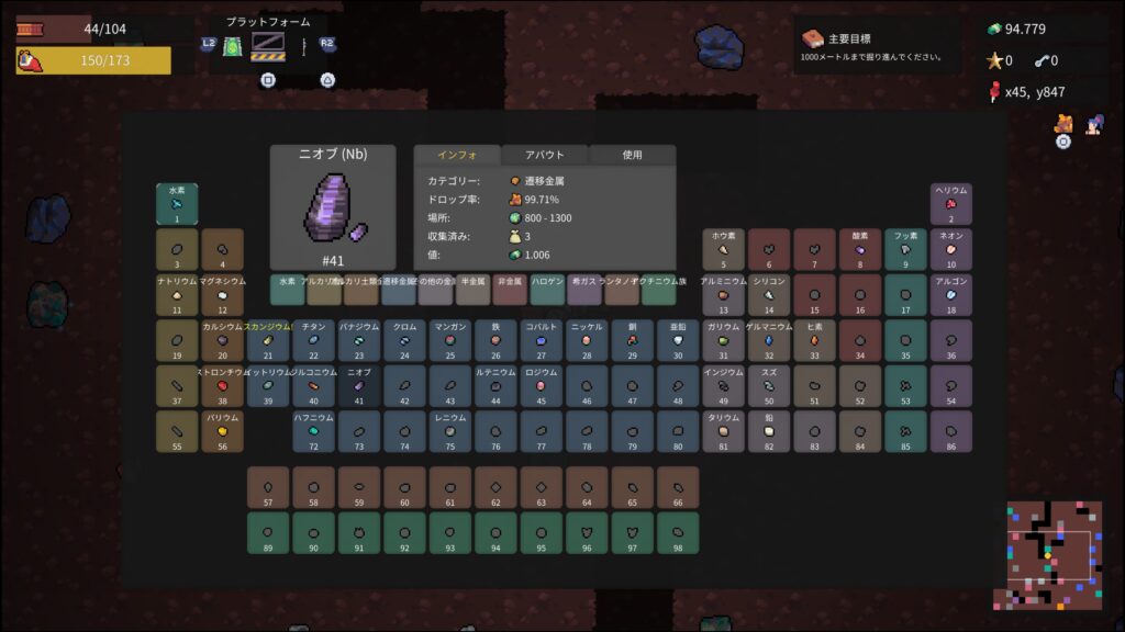 - ニオブ120個、ハフニウム160個、バリウム70個を納品