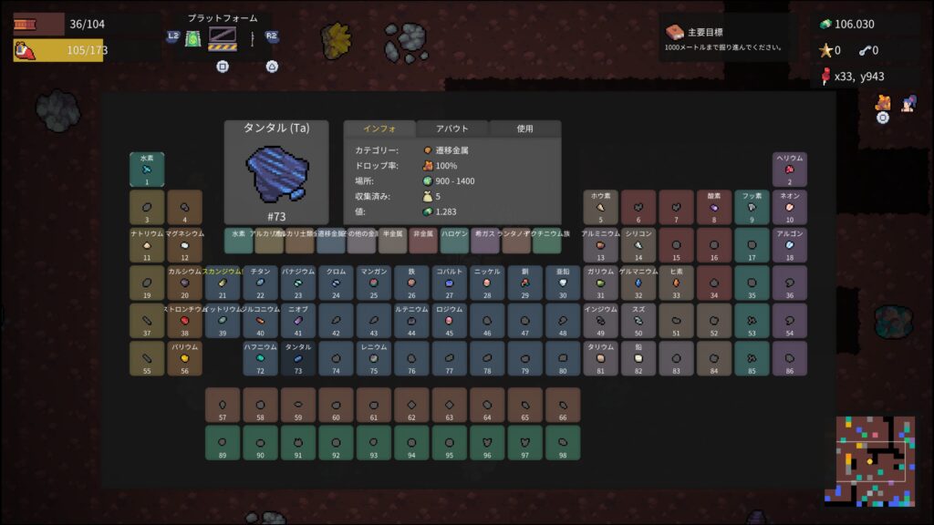 - ニオブ140個、ハフニウム200個、タンタル60個、バリウム100個を納品