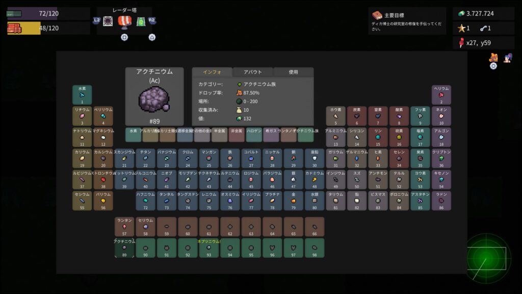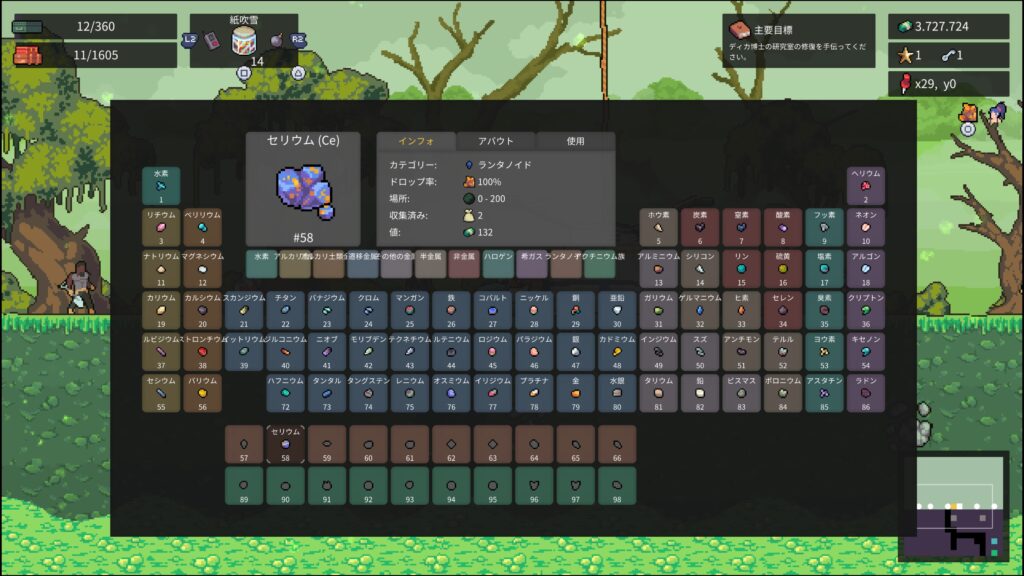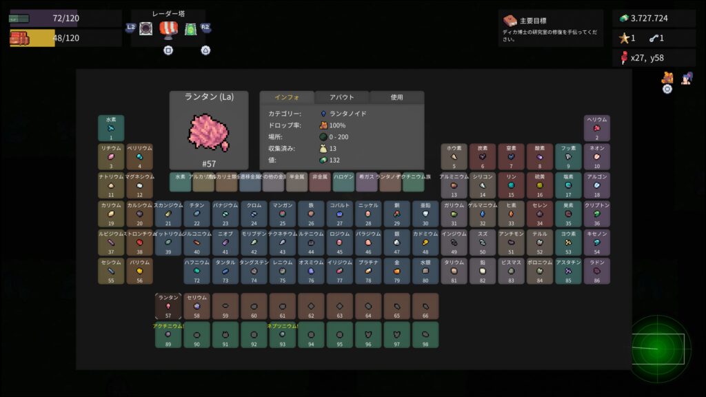 • セリウム10個、ランタン10個、アクチニウム4個、ネプツニウム4個を納品