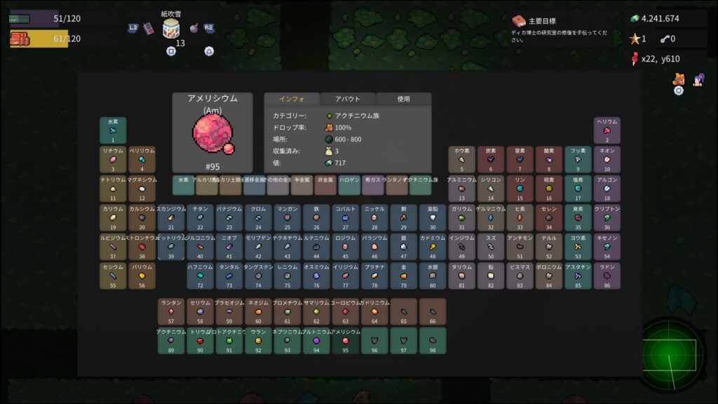 - テルビウム10個、プロメチウム15個、トリウム15個、アメリシウム15個を納品
