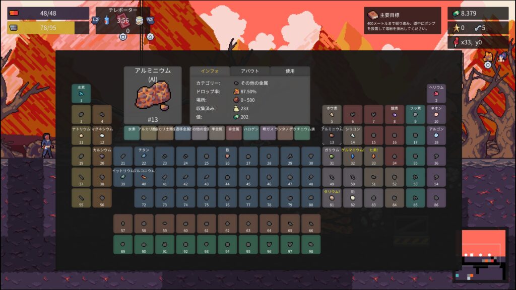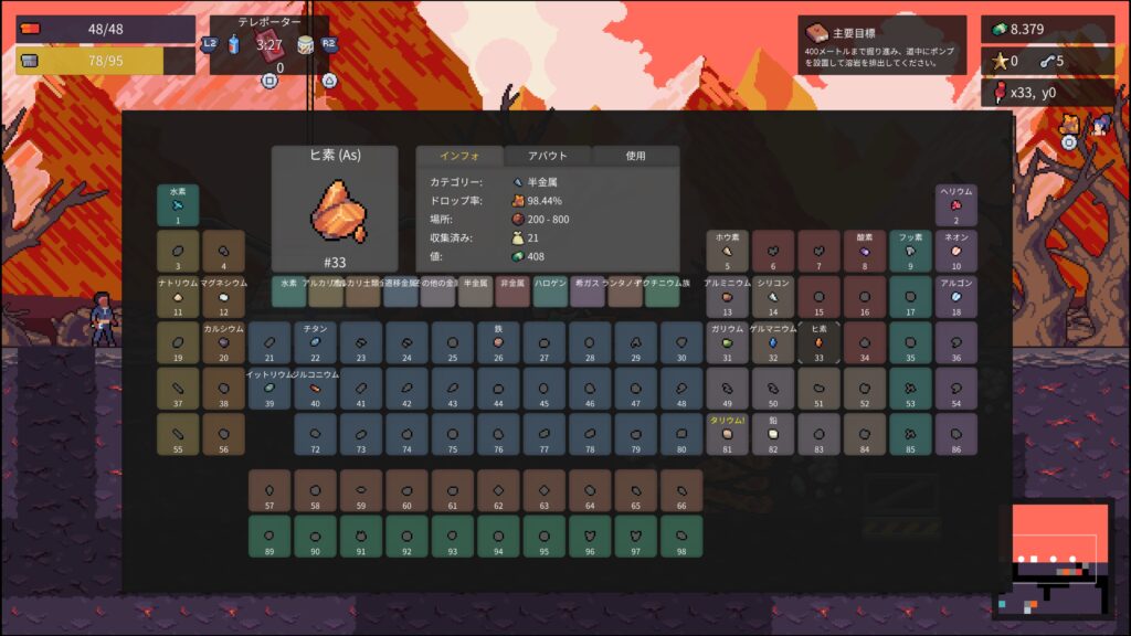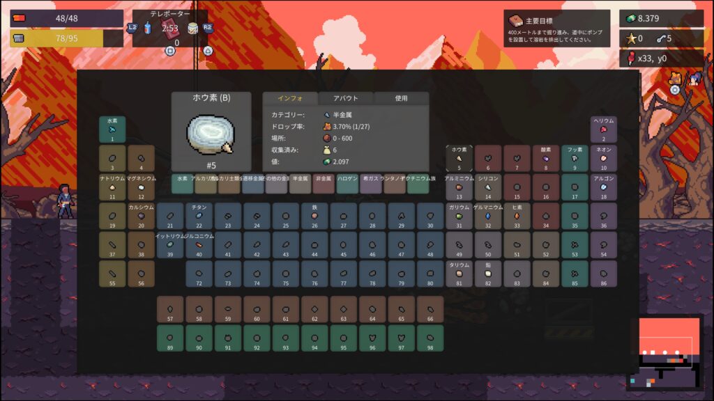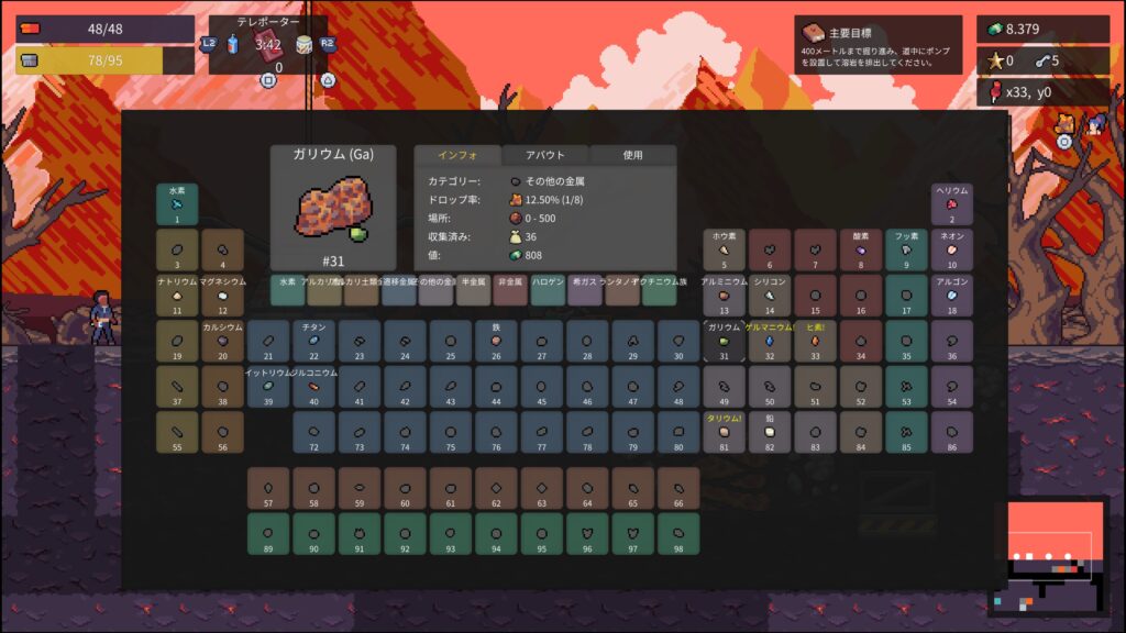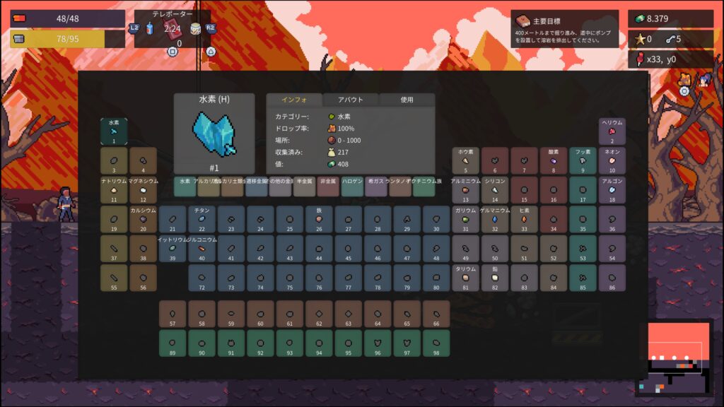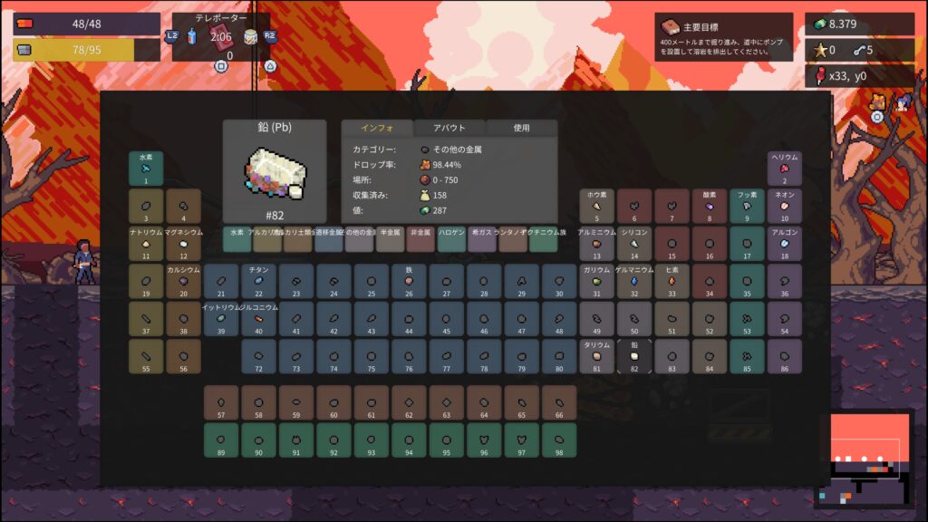- 溶岩に当たっても死ぬことはないが、メカが赤くなっている間は採掘できない