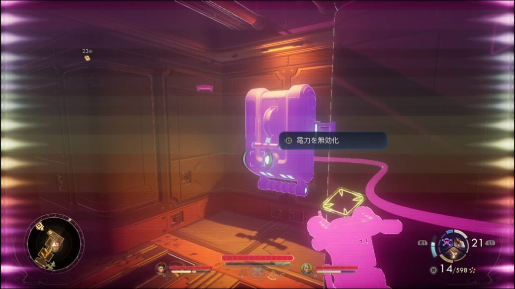段差下のハッチを開けてレーザーを避けて進み、電力を無効化する