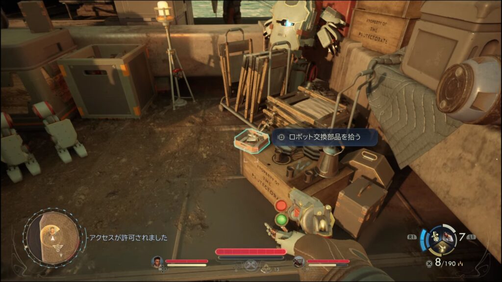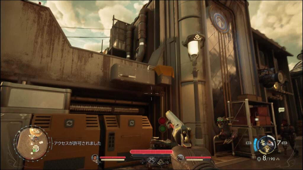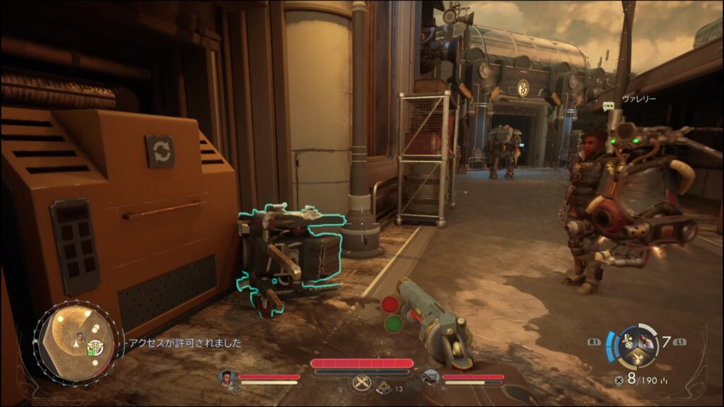- 筆者はゲートの見張りとの会話で、エンジニアリングレベル3が必要条件になっている選択肢を選び入場した