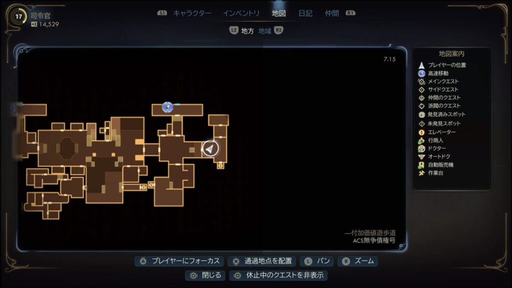 ACS無争債権号の本社タワー受付前にいるガーティ・ヒューエットに話しかけるとクエスト発生