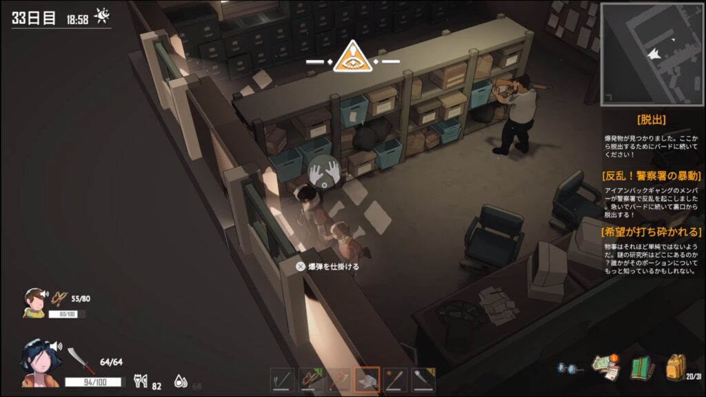 - 爆発物が見つかりました。ここから脱出するためにバードに続いてください!